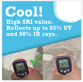 Ready to use cool roof paint. Primarily used for exterior roof or vertical surfaces, facades. Reflects sunlight to a greater extent and prevents the roofing materials from getting heated up even in peak summer afternoons. Works on the principle of continuous rejection of UV and IR rays. The surface itself is not getting heated up, so the air below the surface never gets hot, keeping the rooms cool and comfortable. As a result, effective power saving of up to 40% during peak summer.
